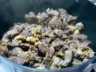 Se taie carnea de oaie cubulete (asa impanata cu grasime). Turcii le taie cubulete mai mici , dar eu le prefer putin mai maricele.